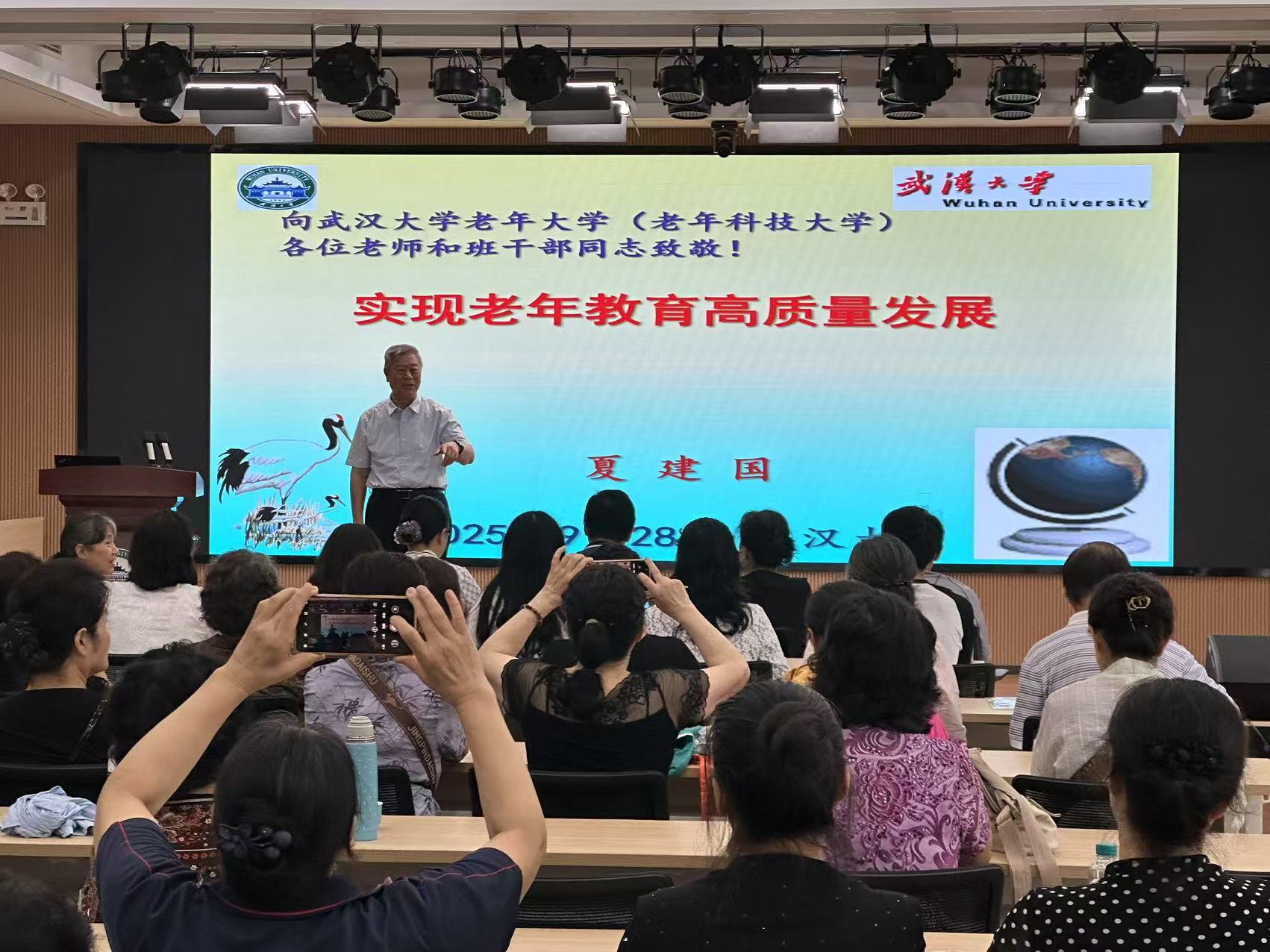 老年大学常务副校长夏建国作《实现老年教育高质量发展》主题讲座。讲座系统阐述了教育强国战略背景下老年教育的重要意义,分析了当前老年教育面临的机遇与挑战,并围绕课程建设、师资队伍、班级管理、科技融合等方面提出了具体发展路径。