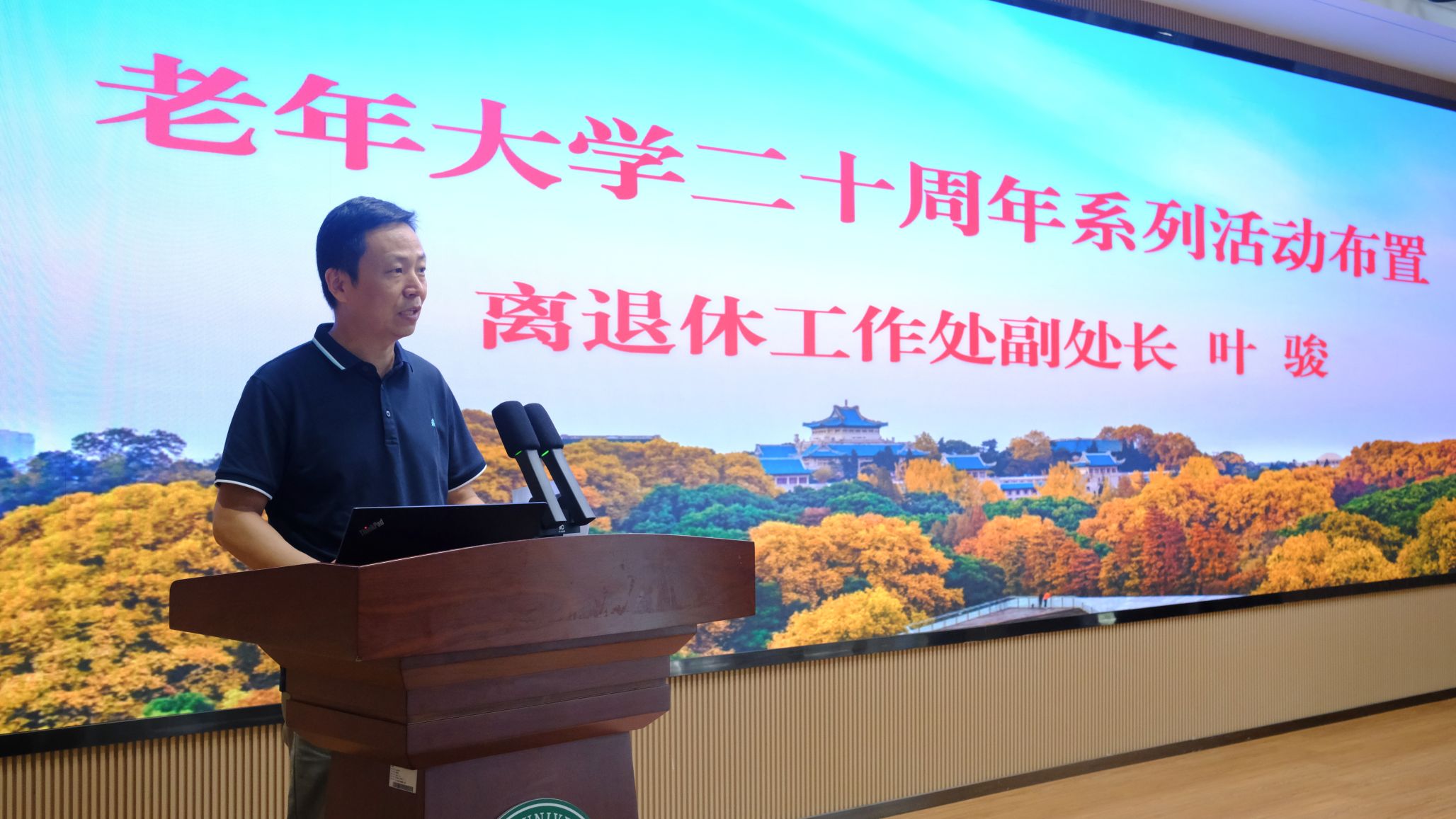 随后,离退休工作处副处长叶骏介绍老年大学成立二十周年系列活动内容并进行工作部署。他强调,全体师生要踊跃参与、认真筹备,确保系列活动高水平开展、高质量呈现,全面展示老年学员昂扬奋进的时代风采。