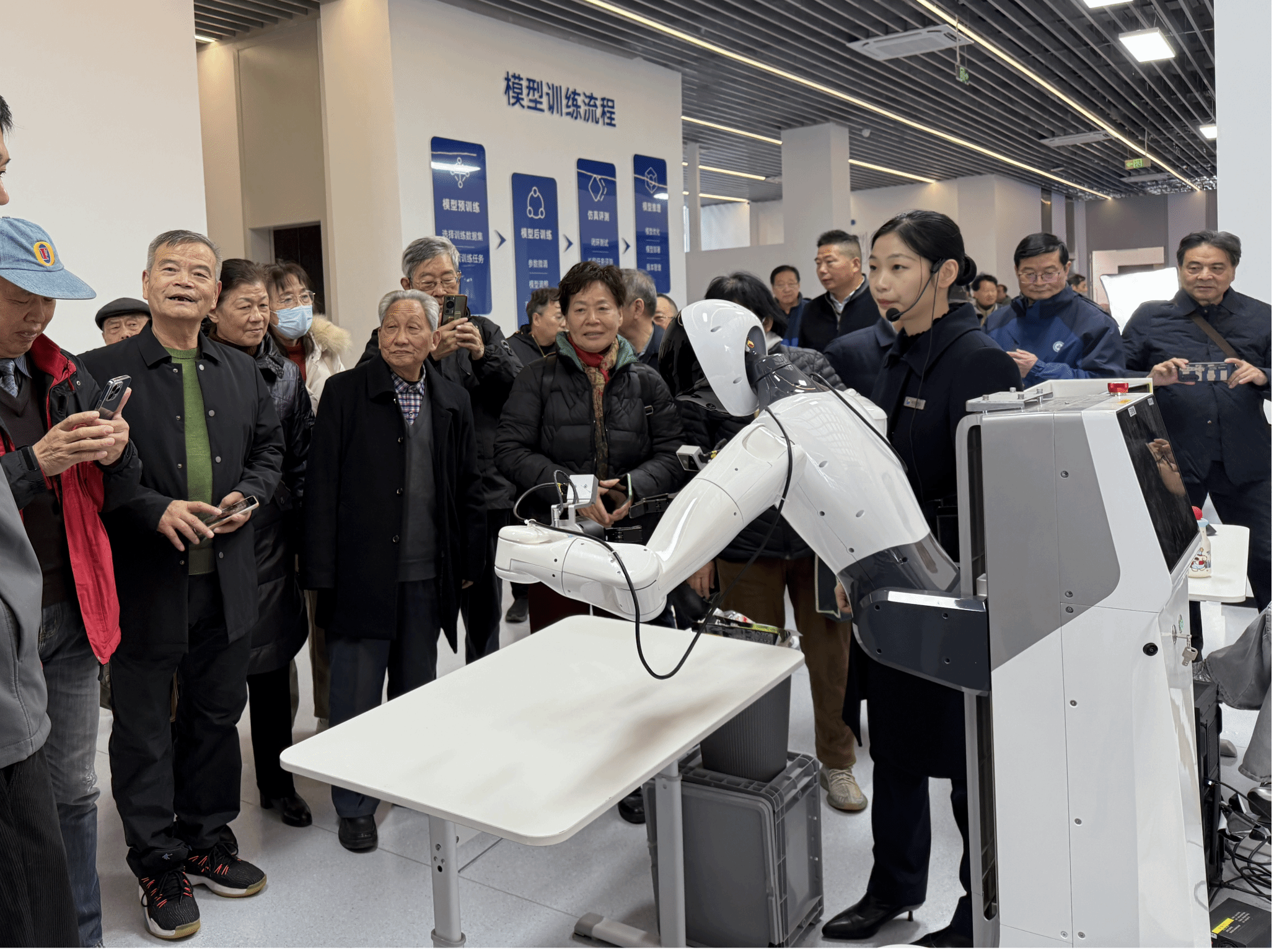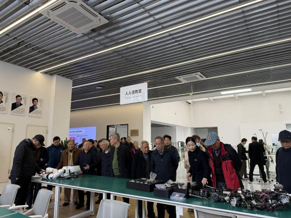 在创新中心工作人员的引导下,参观了人形机器人研发实验室、技术成果展示区,详细了解人形机器人在运动控制、环境感知、人机交互等核心技术的研发突破,现场观摩机器人完成精准动作演示、智能场景适配等实操环节。过程中,老同志们不时驻足询问,与工作人员深入交流技术应用场景、产业发展前景等问题,对人形机器人从实验室走向实际应用的创新实践表示赞叹。大家纷纷表示,此次参观将理论学习与实地体验相结合,不仅直观感受了人工智能技术的硬核实力,更真切体会到科技赋能产业升级、助力社会发展的强劲动力。