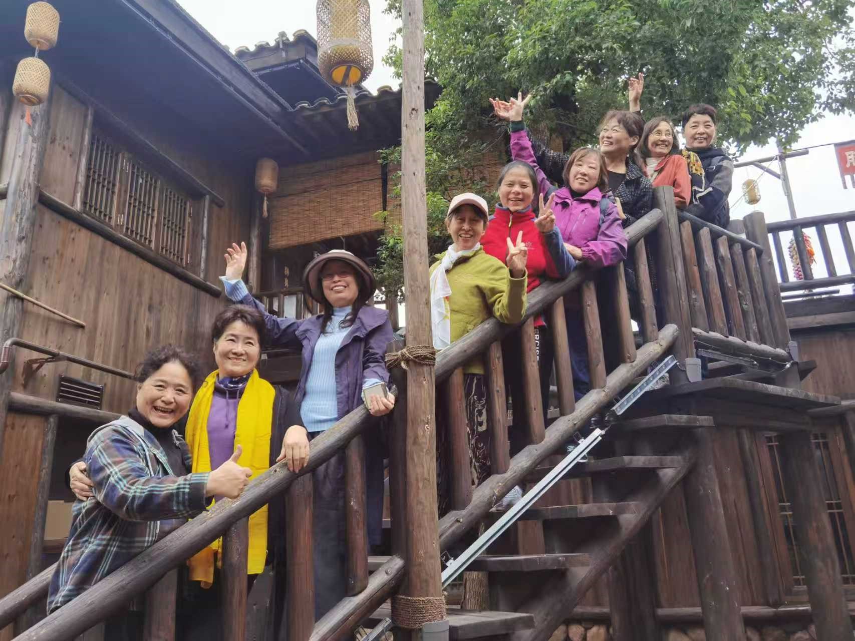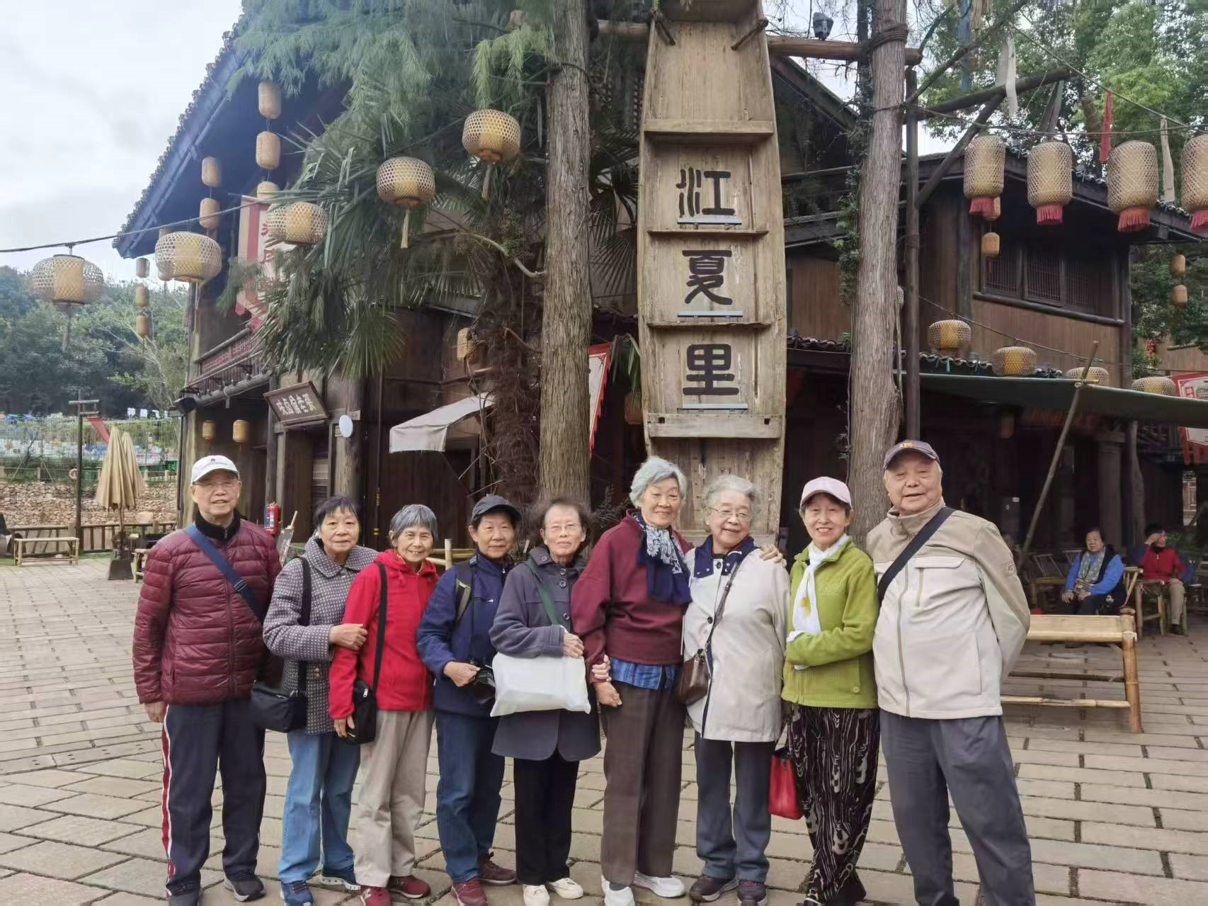 游览结束时,老同志们在景区东门出口处展开横幅,以江夏里古色古香的门楼为背景合影留念,定格下温馨欢乐的瞬间。此次秋游中,学院特意安排一名医生随队,全程保障老同志们的健康安全,充分体现了党组织对离退休老同志的贴心关怀。