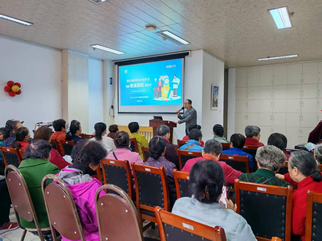 讲座特邀疼痛科副主任医师谢恒韬担任主讲。他以“认识‘沉默的杀手’——骨质疏松的预防与阶梯性治疗”为题,结合丰富的临床经验,深入浅出地讲解了骨质疏松的发病机制与防治要点,讲座内容详实、语言生动,为在场老同志带来了一场知识与关爱并存的健康文化盛宴。互动环节中,老同志们踊跃提问,谢主任一一耐心解答,现场气氛温馨而热烈。