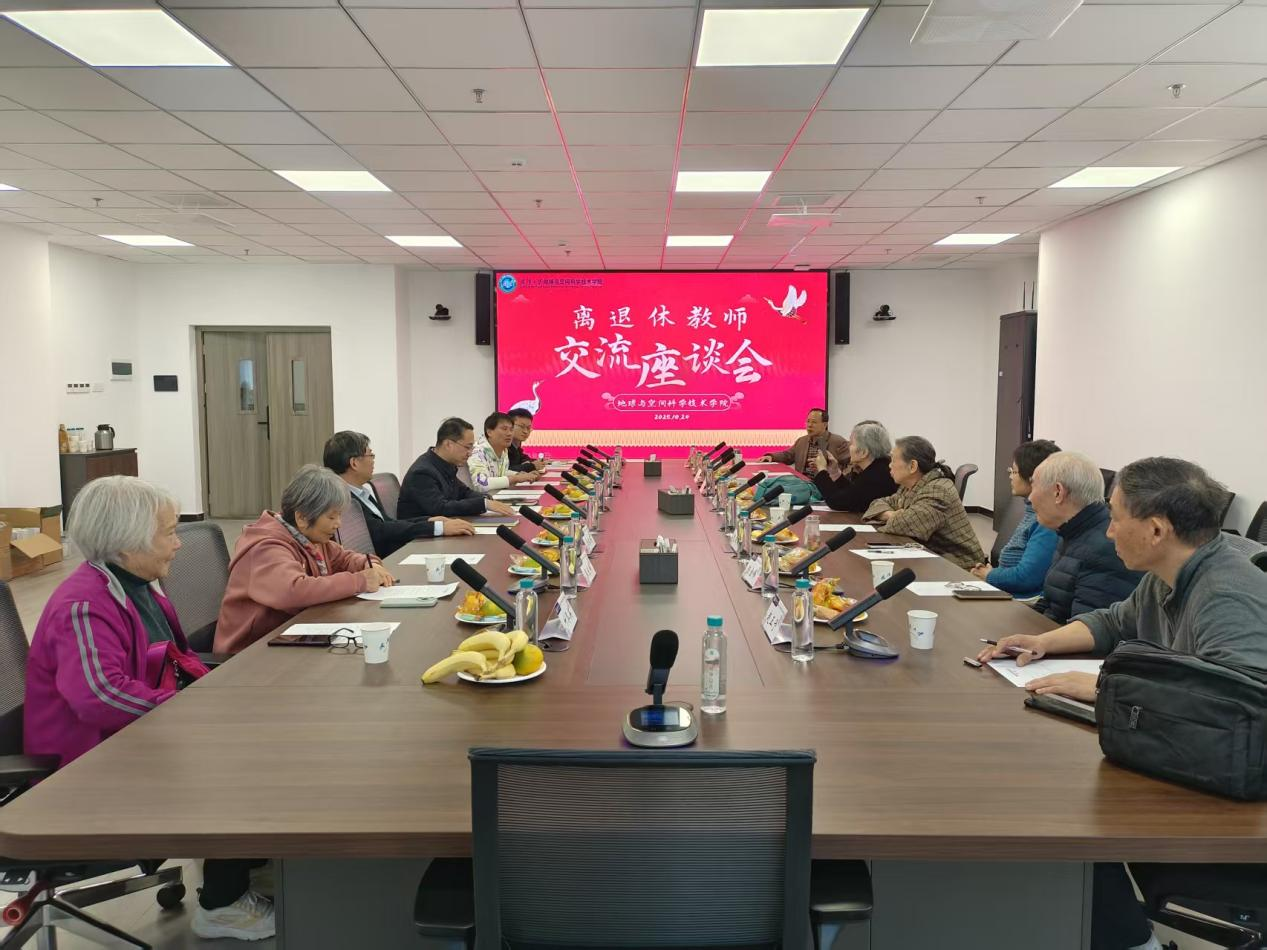 10月24日上午,地空学院召开离退休教师交流座谈会。学院党委书记左征军、院长倪彬彬、副院长袁志刚、陈磊与离退休教师代表欢聚一堂,共话学院发展,共叙深厚情谊。座谈会由陈磊主持。