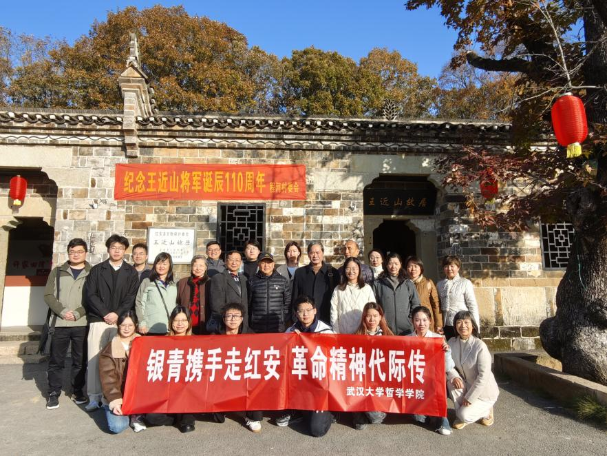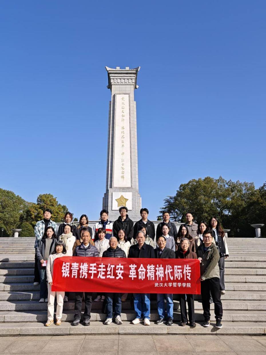 为深入学习贯彻党的二十大精神,加强党员理想信念教育,推动红色基因代际传承,2025年11月25日至26日,武汉大学哲学学院党委精心部署,组织退休党员、在职教职工党员及学生党员代表,共赴“中国第一将军县”——湖北省红安县,开展为期两天的“银青携手走红安,革命精神代际传”主题教育培训活动。老中青三代党员跨越年龄、融汇信仰,齐聚这片“山山埋忠骨,岭岭铸丰碑”的红色沃土,在步履铿锵中重温烽火岁月,在沉浸教学中砥砺初心使命。
