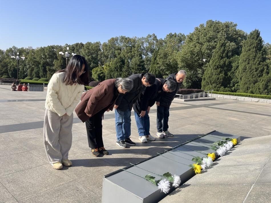 紧接着,队伍前往烈士墓地瞻仰。这里安葬着红二十五军军长蔡昇熙、政委吴焕先、中共鄂豫皖省委书记沈泽民三位革命先烈。在工作人员以《为有牺牲多壮志》为题的现场深情讲述中,师生们重温了三位将军那段气壮山河的英雄史诗。他们在风华正茂之年以身许国,用滚烫的热血浇灌革命理想,将短暂的生命定格成了永恒的丰碑。全体师生在墓前肃立默哀,于静默中感受那份跨越时空、荡气回肠的信仰力量。