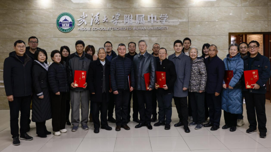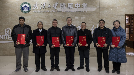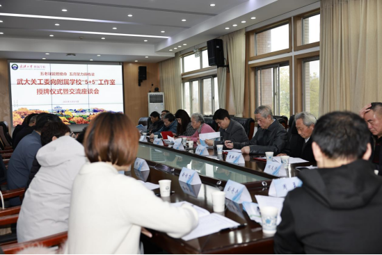 武汉大学关工委常务副主任沈瑞年、离退休工作处处长王临平、离退休工作处副处长兼校关工委秘书长吴仪,受聘工作室的老教授老专家老劳模夏建国、李新福、何炎祥、周运清、陈广云、胡培荣、苏荣军等 7 位离退休教师,附属学校党委书记朱华、校长周雅冰以及附属学校关工委全体成员共同见证“5+5”工作室授牌仪式。仪式由附属学校党委副书记、附校关工委主任宋泉主持。