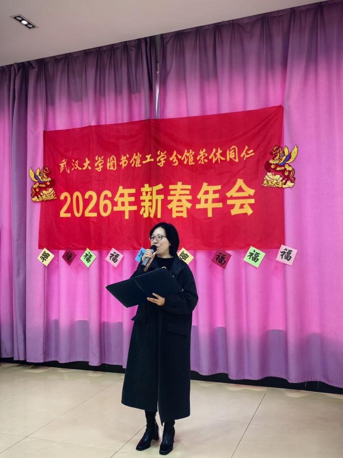 图书馆党委副书记徐萍代表党政领导深情致辞:“感谢您们将最璀璨的年华献给工学分馆!” 她细数2025年图书馆在资源建设、智慧服务等领域的新突破,并向荣休同仁致以崇高敬意与新春祝福,现场掌声如潮。